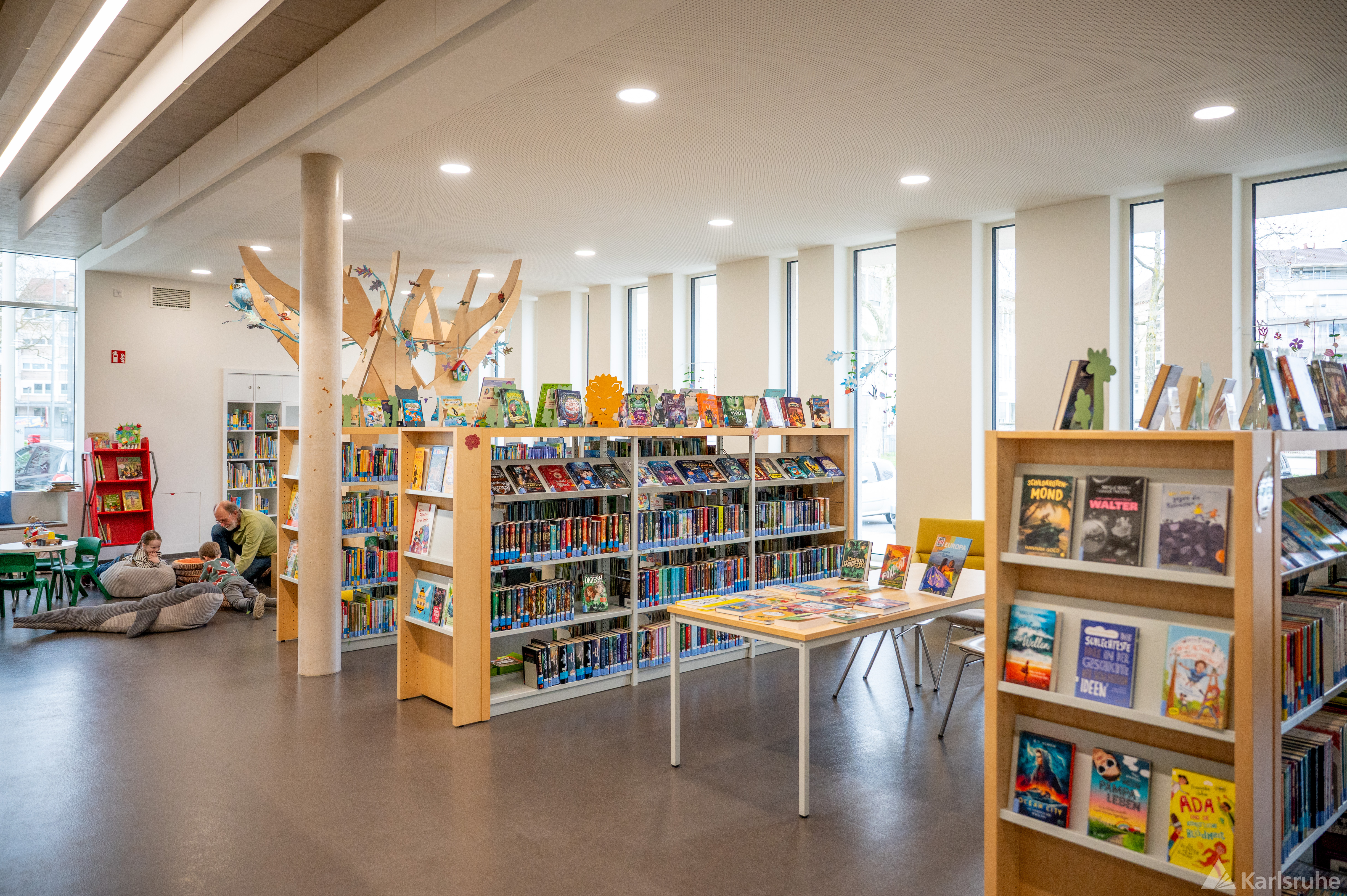 Die neue Stadtteilbibliothek in Mühlburg liegt zusammen mit dem Bürgerzentrum zentral in der Nähe des Entenfangs. Eröffnet wurde sie im Herbst 2019. In den großzügigen barrierefreien Räumen nahe dem Mühlburger Zentrum gibt es neben vielen Medien ein ruhiges Lernstudio mit Computerarbeitsplätzen, gemütliche Sessel zum Schmökern und einen freundlichen Kinderbereich. Wir freuen uns auf Ihren Besuch!