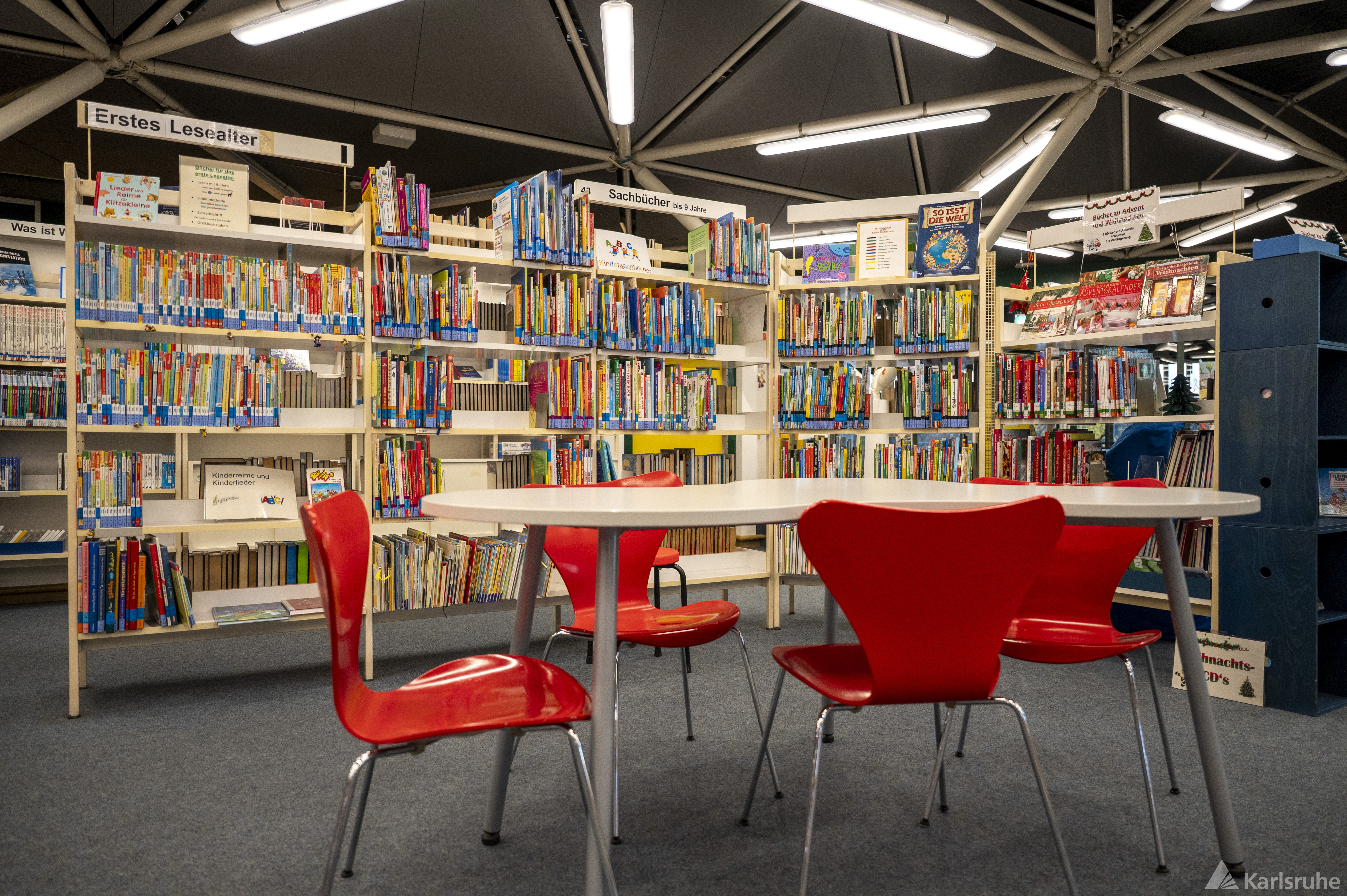 In der Stadtteilbibliothek Neureut lernen Kinder zwischen Vorschulalter und Klasse 6 spielerisch die Bibliothek, ihre Nutzung und das vielfältige Angebot kennen.